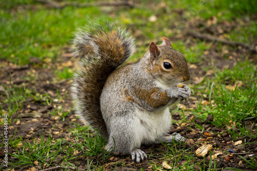 © Nicolai, Fototapeta premium Closeup of a cute wild squirrel eats nut