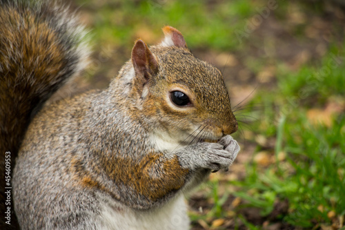 © Nicolai, Fototapeta premium Closeup of a cute wild squirrel eats nut