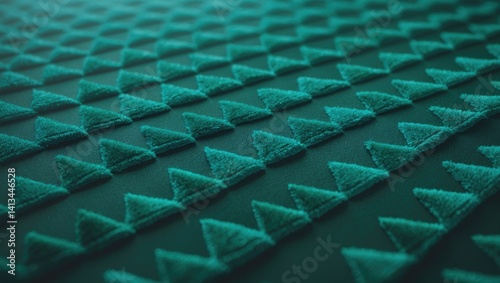 © CryptoCanvas, Naklejka premium Closeup of a dark green matte hard carpet background, featuring a textured design of numerous triangles, typically found in ablution or wudhu areas.