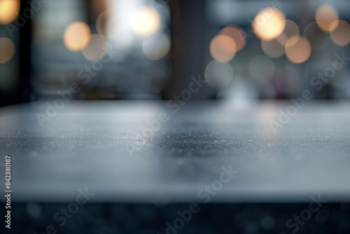 © grey, Fototapeta premium Closeup of a dark greyish elegant table with a soft defocused background with bokeh