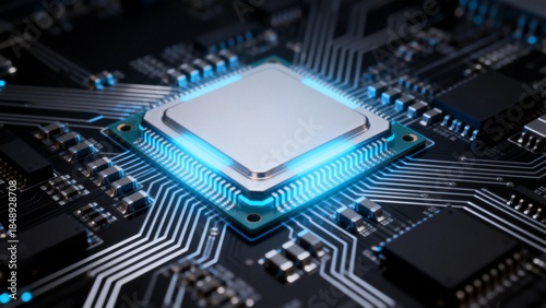 © Audrey, Fototapeta premium Closeup of a glowing computer chip