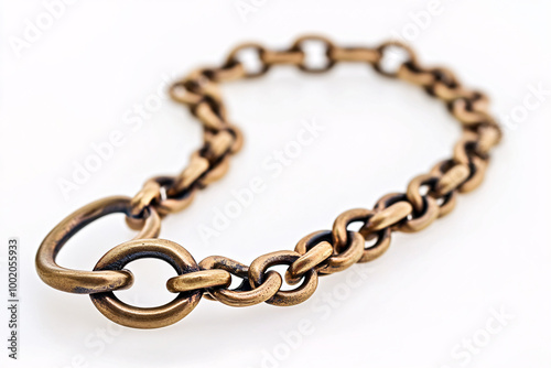 © VASSELL TRADING, Obraz premium closeup of a gold chain bracelet on white background