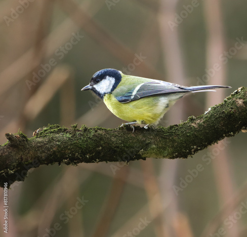 © Wirestock, Obraz premium Closeup of a great tit perched on a branch of a tree