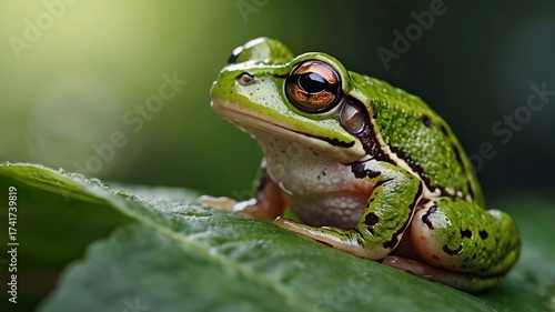 © Toko Matahari, Naklejka premium Closeup of a green frog with a funny expression