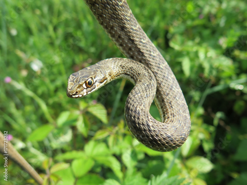 © Frank, Fototapeta premium closeup of a head of a snake Malpolon monspessulanus