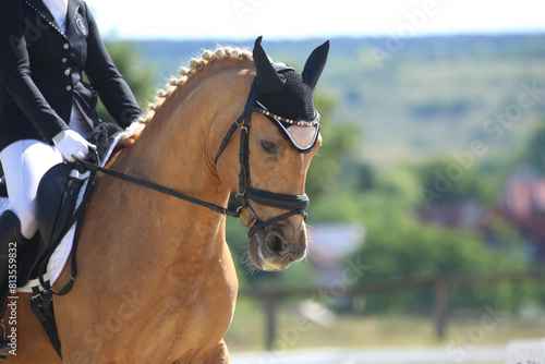 © acceptfoto, Fototapeta premium Closeup of a horse portrait during competition training