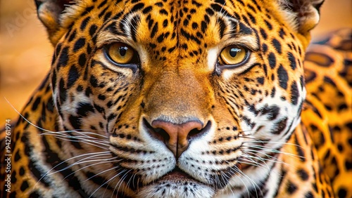 Fototapeta premium Closeup of a jaguar's face with black spots on orange fur
