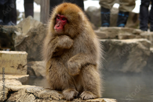 Naklejka premium Closeup of a japanese macaque during the winter season