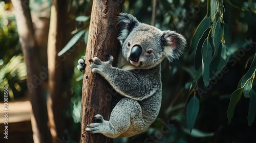 Obraz premium Closeup of a Koala Bear Climbing a Tree Trunk in the Australian Bush
