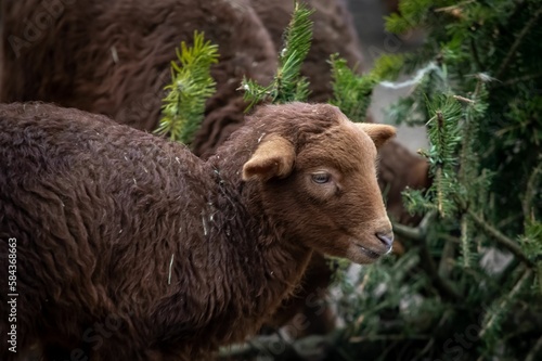 Obraz premium Closeup of a lamb in the wild park of Bad Mergentheim in Germany