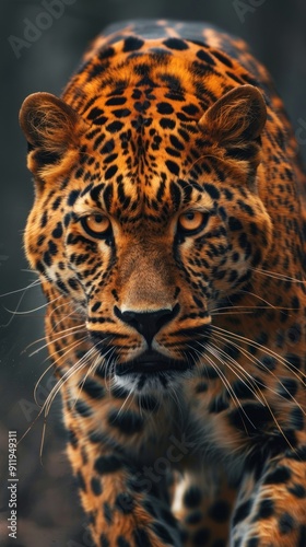 © Iswanto, Obraz premium Closeup of a leopard's face, showing its intense gaze and spotted fur.