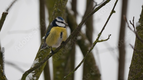 Fototapeta premium Closeup of a majestic Eurasian blue tit bird perched on a tree branch