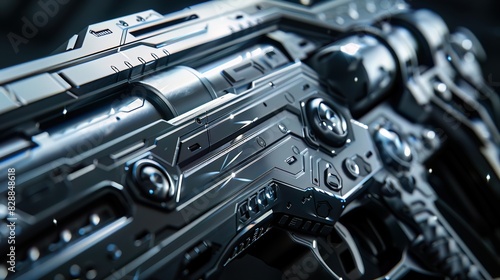 Fototapeta premium Closeup of a metallic hitech gun with intricate details, soft light accents,...