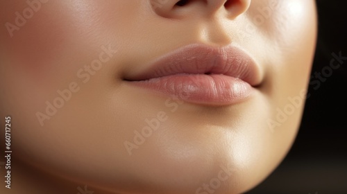 Obraz premium Closeup of a persons face, their eyes closed and their lips curled into a...