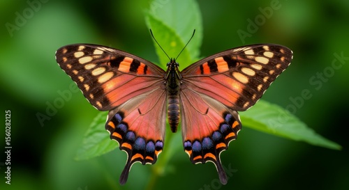 © AleniaFlow, Fototapeta premium Closeup of a Red Orange Butterfly on Green Leaves