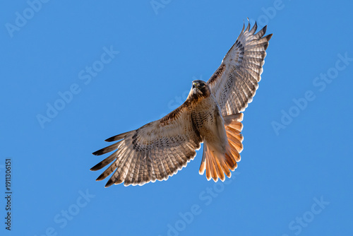 Fototapeta premium Closeup of a red-tailed hawk in flight.