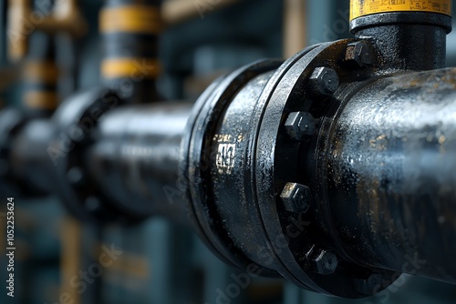 Fototapeta premium Closeup of a refinery valve, processing fuel under pressure, industrial detail