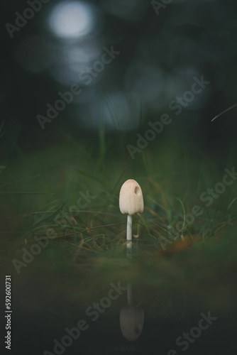 Obraz premium Closeup of a small mushroom growing in a forest with blurred background
