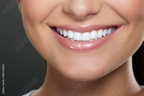 © Balaraw, Obraz premium Closeup of a smiling woman's face with perfect teeth