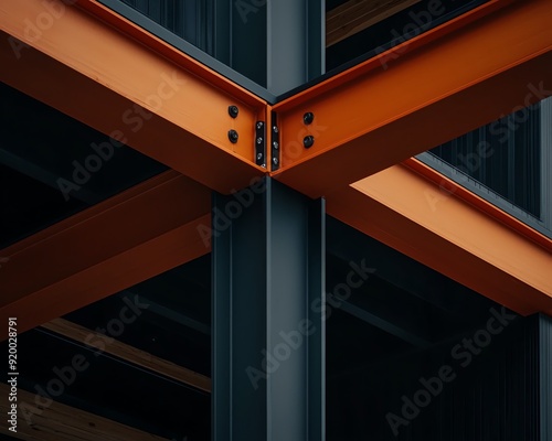 © Natalia, Obraz premium Closeup of a steel beam framework in a contemporary building