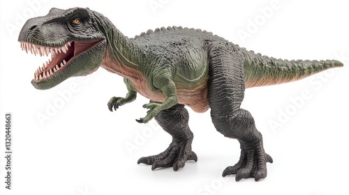 © 路加 石, Naklejka premium Closeup of a T-Rex figurine with sharp teeth and textured skin, isolated on white, showcasing primal power and intricate detail.