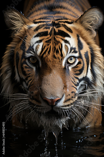 Fototapeta premium closeup of a tiger on black background, portrait photo.