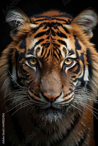 © JKLoma, Naklejka premium closeup of a tiger on black background, portrait photo.genearative ai