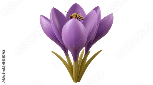© Chanthakan, Naklejka premium Closeup of a vibrant delicate lavender flower in full bloom surrounded by lush green leaves against a clean white background