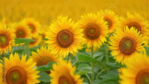 © Rakibul, Fototapeta premium Closeup of a vibrant field of sunflowers in full bloom on a sunny day