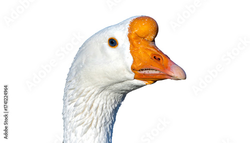 © apan, Obraz premium Closeup of a White Goose Head with an Orange Beak.