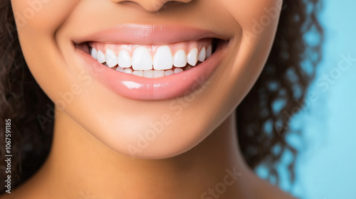 Obraz premium Closeup of a woman s beautiful smile with white teeth