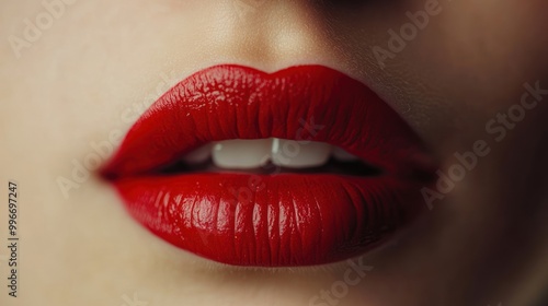 Obraz premium Closeup of a woman's mouth with red lipstick.