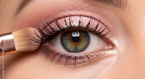 © nashrin, Obraz premium Closeup of a womans eye being professionally made up with a brush applying eyeshadow, highlighting the beauty and detail of the skin