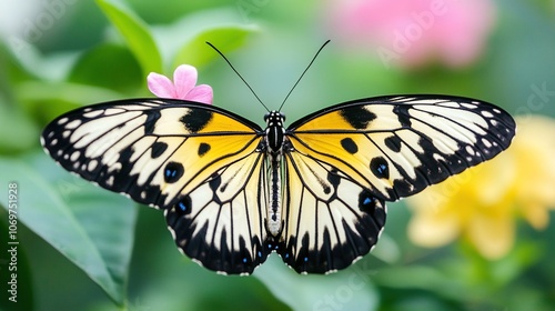 © diracreativa, Obraz premium Closeup of a Yellow and Black Butterfly with Blue Spots