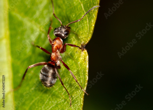 © schankz, Naklejka premium Closeup of an ant on a leaf on nature.