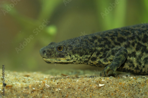 Naklejka premium Closeup of an aquatic Pleurodeles nebulosus, Algerian ribbed newt female
