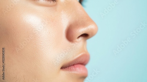 Obraz premium Closeup of an Asian man s face with smooth, glowing skin, highlighted by...