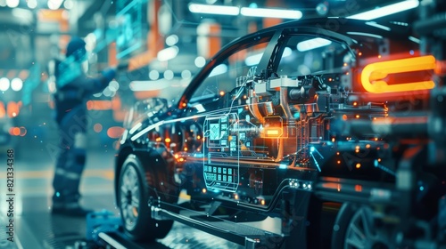Fototapeta premium Closeup of an autonomous vehicle technician working on a selfdriving cars AI...