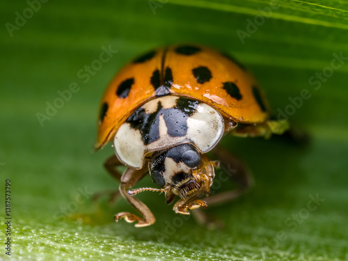Fototapeta premium Closeup of Asian ladybird on green leaf