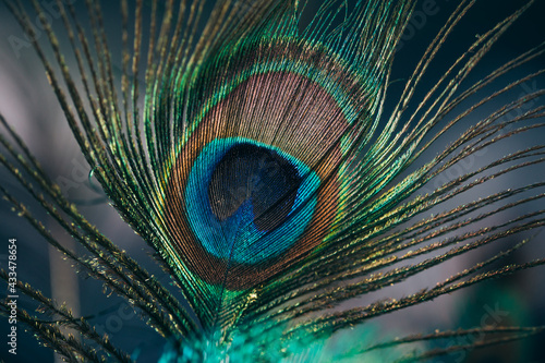 Obraz premium Closeup of beautiful and colorful peacock feathers.