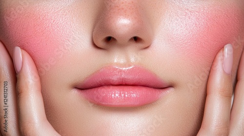 Obraz premium Closeup of beautiful woman's blushed face studio beauty portrait