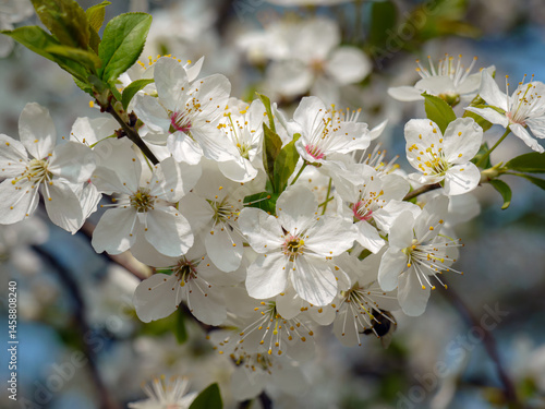 © Roman Milert, Obraz premium Closeup of blackthorn tree with blooming flowers