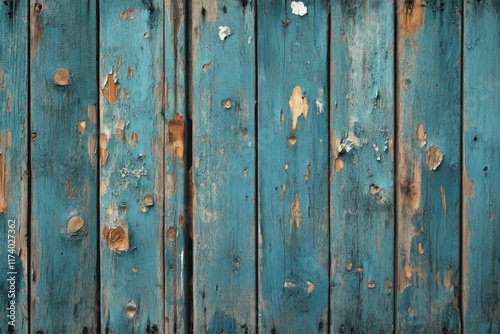 Fototapeta premium Closeup of blue weathered wooden planks with peeling paint