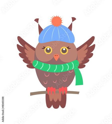 © robu_s, Naklejka premium Closeup of Brown Sitting Owl Vector Illustration