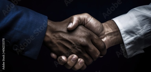 © SKIMP Art, Obraz premium closeup of business partners shaking hands Generative AI
