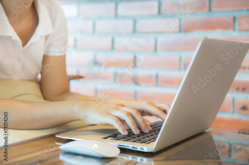 © jannoon028, Fototapeta premium Closeup of business woman hand typing on laptop keyboard with mo