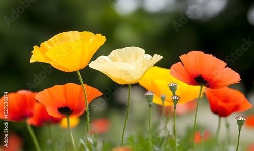 © simba kim, Obraz premium closeup of california poppies, Generative AI