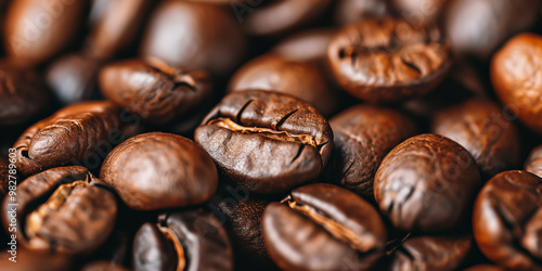 © ftlupuper, Fototapeta premium Closeup of coffee beans for background, Coffee time and relax background, Generative AI
