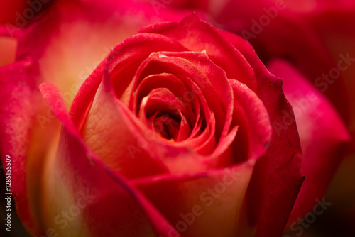 © Studio95, Fototapeta premium Closeup of Coral Pink bright one rose