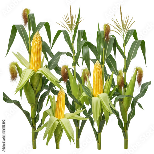 Obraz premium Closeup of Corn Plants with Ripe Yellow Ears Against Transparent Background